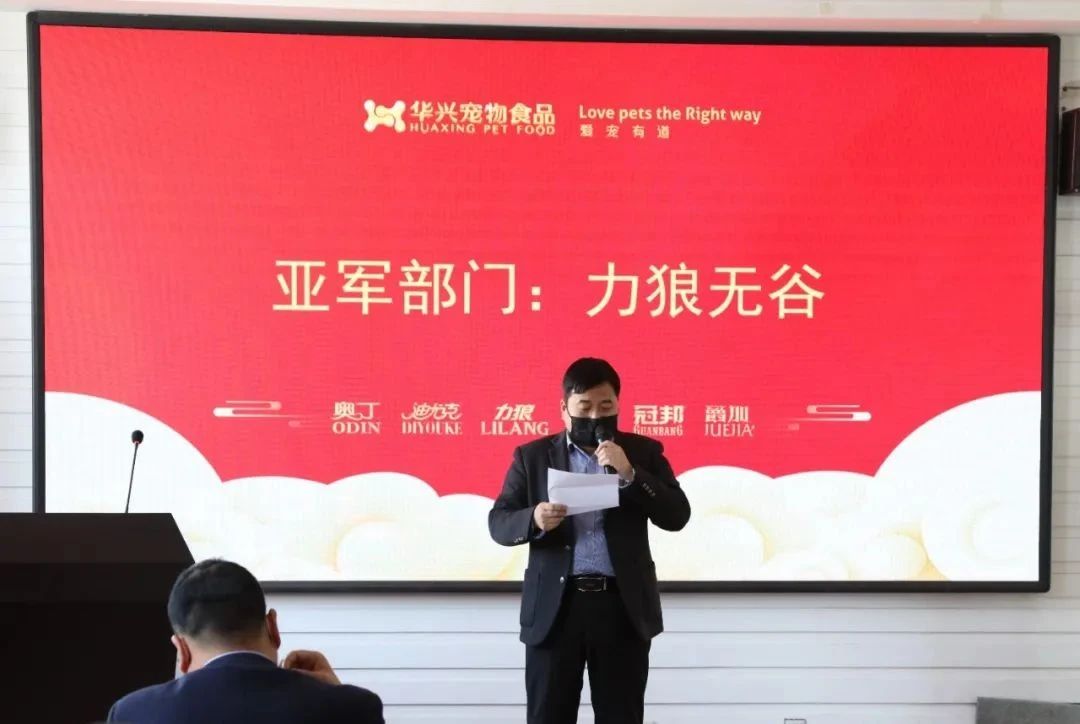伴隨著鼓舞人心的開場音樂,主持人宣布華興寵物食品表彰大會(huì)正式開始。主持人公示銷售部增長率排名名單并宣讀銷售部的前三名。