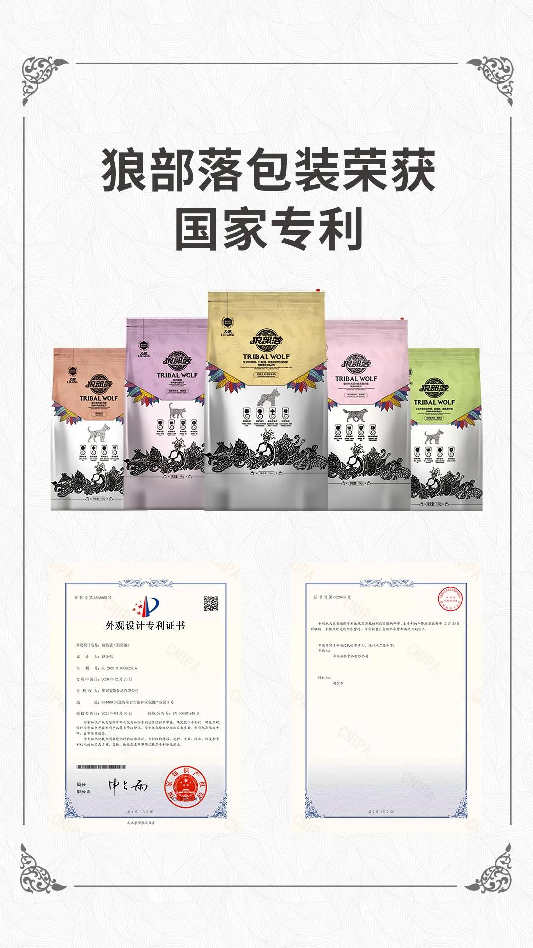 近日,國家知識產權局經過初步審查,力狼狼部落包裝袋外觀設計被授予專利權,頒發外觀設計專利證書,專利號:ZL 2020 3 0802625.6,并在專利登記薄予以登記。