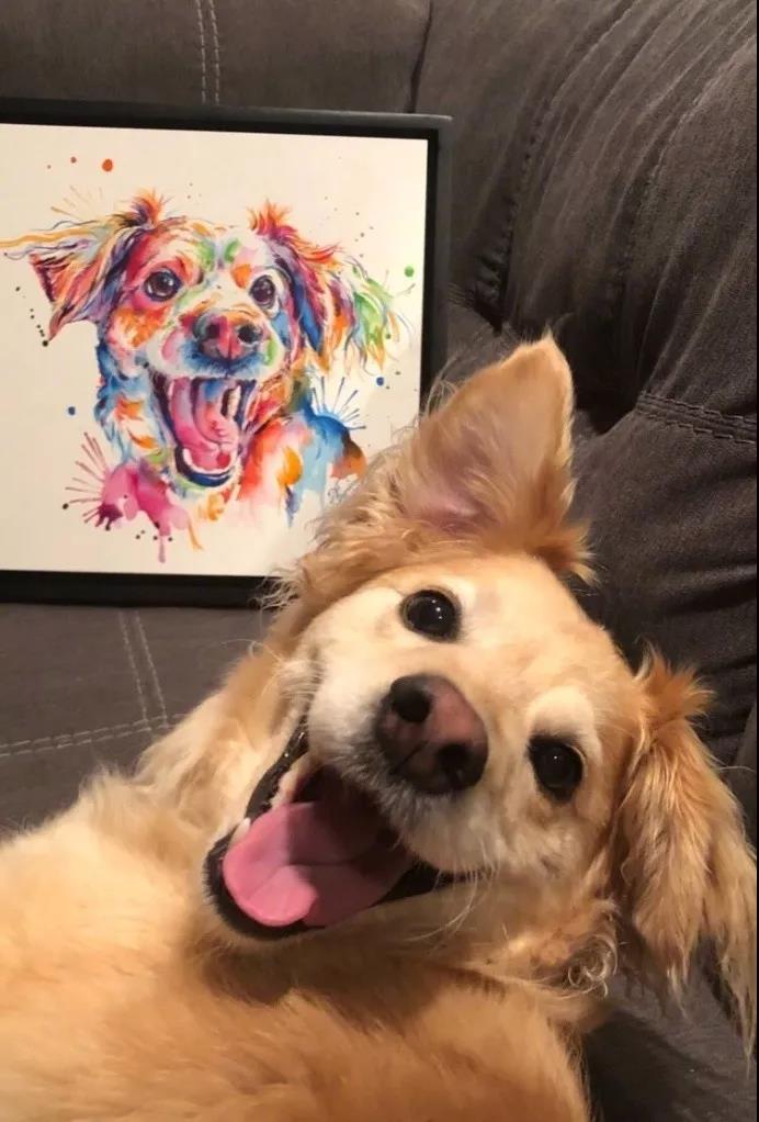 我家狗被蜜蜂蟄了,雖然很疼,但看到我它還是露出了大大的笑容。