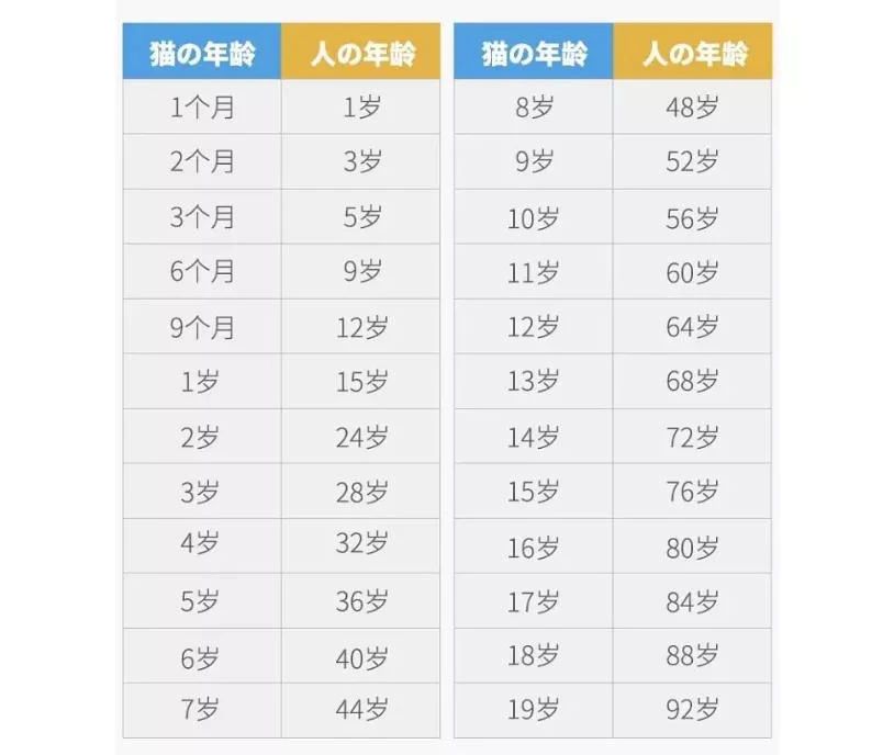 貓咪和人類年齡的對(duì)照表